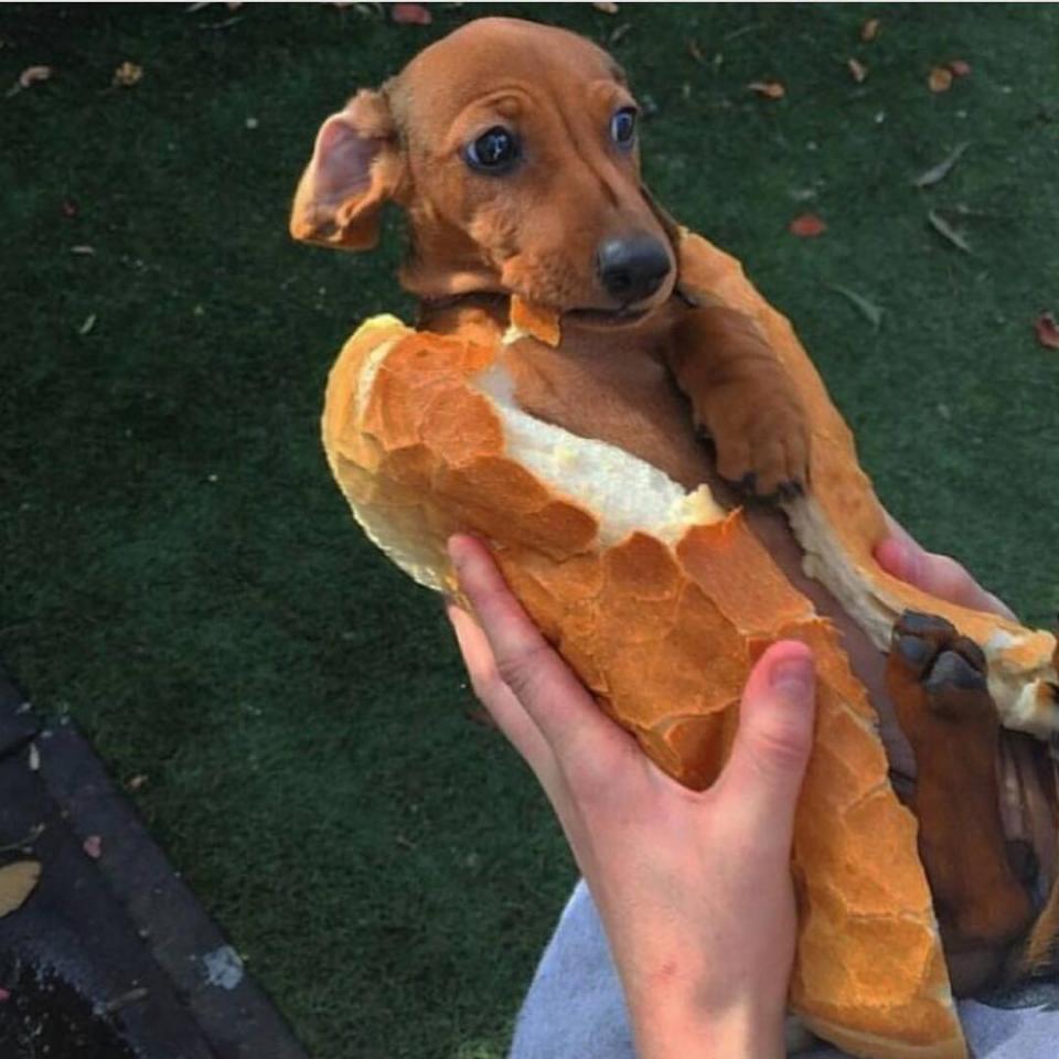 Ο παρουσιαστής έβαλε ένα σκυλάκι ανάμεσα σε δύο μεγάλα κομμάτια ψωμί και έγραψε στη λεζάντα: «Ηοt Dog! Κυριολεκτικά»!