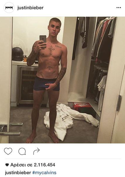 Σάλο έχει προκαλέσει η τελευταία selfie του Justin Bieber, ο οποίος φωτογραφίζεται μπροστά από τον καθρέφτη γυμνός μόνο με το μποξεράκι του κρατώντας... τα γεννητικά του όργανα!
