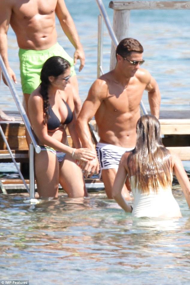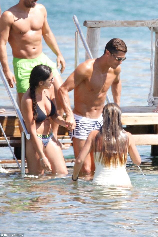'Ηταν κρύα η θάλασσα ή δεν ξέρει να κολυμπάει καλά. Πάντως μια από τις συνοδούς του τον βοήθησε να μπεί. Ο Ρονάλντο έμεινε ελάχιστα στο νερό. Προτίμησε τις ξαπλώστρες ή να κάνει βόλτες στην ξύλινη εξέδρα για να φαίνονται καλύτερα οι τέλειοι κοιλιακοί του.