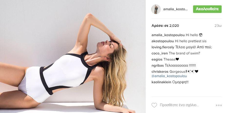 Η Αμαλία Κωστοπούλου με πόζα "Όχι άλλο ήλιο"
