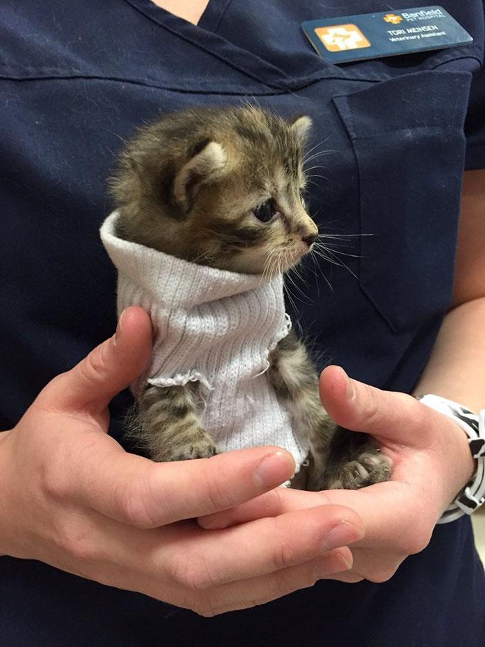 Το γατάκι ζεστάθηκε και ευτυχώς βρέθηκε σχεδόν αμέσως οικογένεια που τον υιοθέτησε.