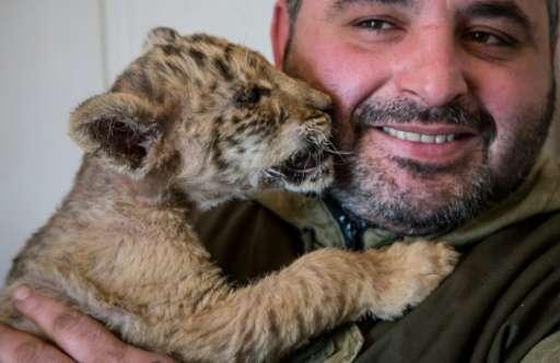 Ξαπλωμένο πάνω στον καναπέ μέσα στο ημιφορτηγό του διευθυντή του ζωολογικού πάρκου, αυτό το ζωάκι με το τυπικό μπεζ τρίχωμα του λιονταριού και τις ρίγες της τίγρης περιμένει ανυπόμονα το μπιμπερό με το γάλα. "Δεν το αφήνουμε μέσα στο κλουβί, κάνει πολύ κρύο έξω. Το κρατάμε εδώ μαζί μας, κοιμάται και στο κρεβάτι μας", δήλωσε ο διευθυντής του πάρκου 'Ερικ Αϊραπετιάν.