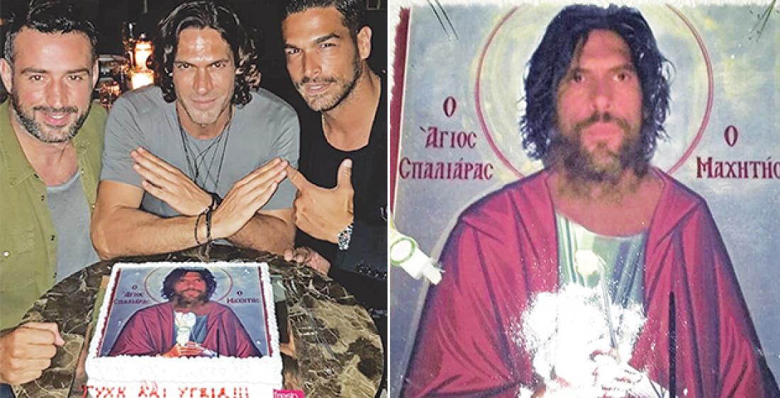 Τι εννοούμε; Κάνοντας χιούμορ με τα θεία, «βάφτισαν» το γνωστό μοντέλο «Αγιος Σπαλιάρας, ο Μαχητής» και έδωσαν παραγγελία στον ζαχαροπλάστη να φτιάξει την «αγιογραφία» του πάνω σε τούρτα.