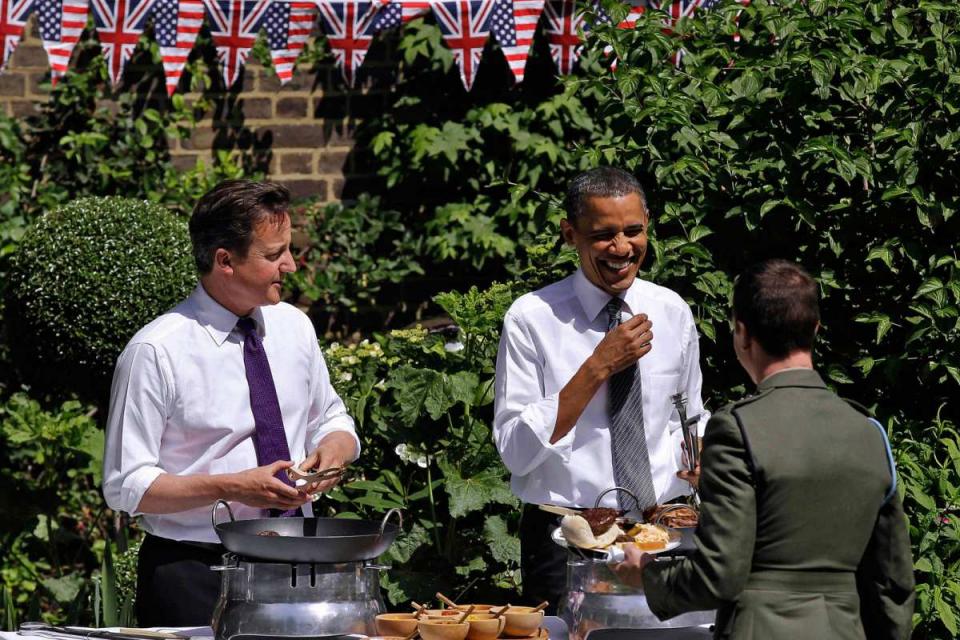 Σερβίροντας σε μπάρμπεκιου στον Λευκό Οίκο, δύσκολο για τους "θνητούς" με το άσπρο πουκάμισο. Παιχνιδάκι για τον Ομπάμα