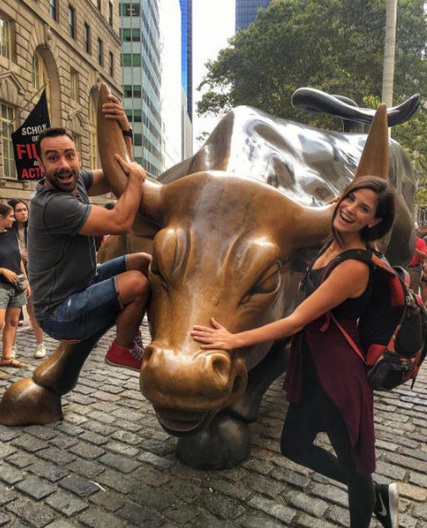 Το ζευγάρι μετά το τέλος των καλοκαιρινών τους διακοπών, επισκέφτηκε τη Νέα Υόρκη. Οι δυο τους χαμογελαστοί και με αρκετή δόση χιούμορ, αγκαλιάζουν έναν...ταύρο , τον πιάνουν από τα κέρατα και ποζάρουν.