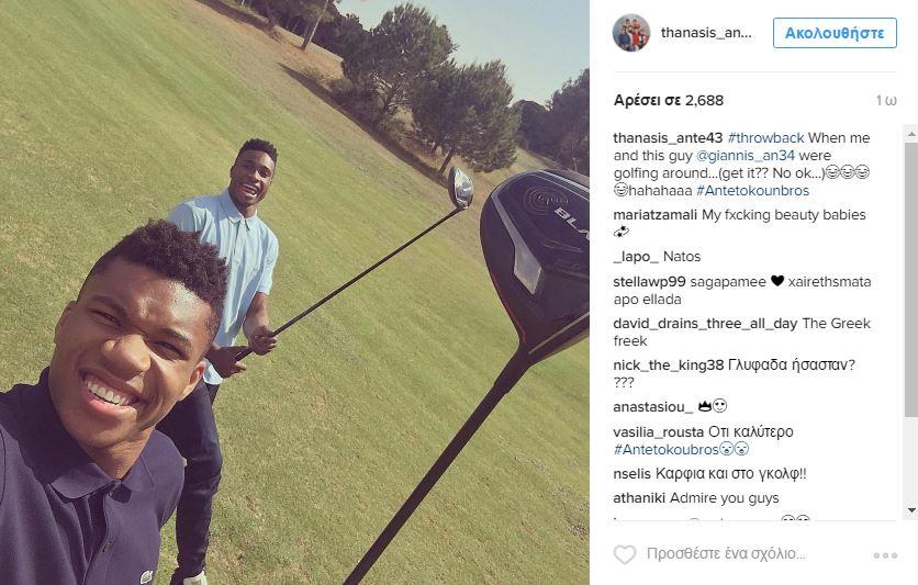 Οι Αντετοκούνbros, είπαν να αφήσουν λίγο το μπάσκετ και να καταπιαστούν με άλλο άθλημα, το Golf! Mάλιστα, τα δύο αδέρφια που γράφουν ιστορία στο αμερικανικό μπάσκετ, ανέβασαν στα social media μια φωτογραφία τους παίζοντας golf, και είμαστε σίγουροι ότι και σε αυτό, πολύ καλοί ήταν!