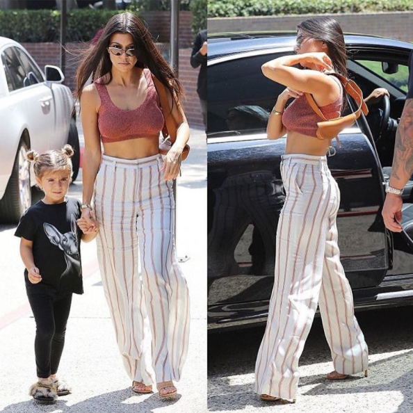 Με ένα ψηλόμεσο λευκό παντελόνι με ρίγες κι ένα crop top με glitter, η Κourt σίγουρα ξέρει τι θα πει στιλ, αλλά και γυμναστική.