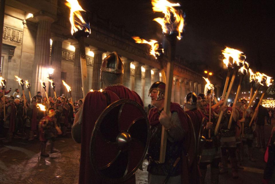 Στη Σκοτία, οι εορτασμοί για την Πρωτοχρονιά κρατούν τρεις μέρες. Βίκινγκς και στρατιώτες από τα παλιά πλημμυρίζουν τους δρόμους του Εδιμβούργου. Πυροτεχνήματα και για τους πιο τολμηρούς βουτιές στα παγωμένα νερά του ποταμού Φορθ.