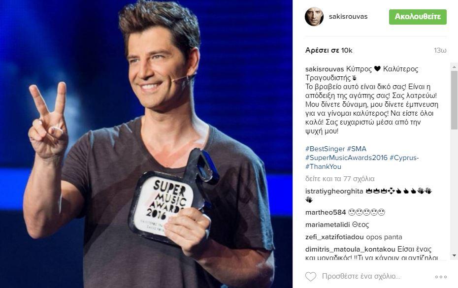 Καλύτερος Τραγουδιστής της Χρονιάς ο κορυφαίος Σταρ Σάκης Ρουβάς.