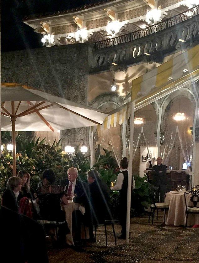 Ο Τραμπ θα επιστρέψει στη Νέα Υόρκη την Κυριακή, αλλά στο μεταξύ, ο φακός τον συνέλαβε με την οικογένειά του και ένα ζευγάρι φίλων να δειπνεί στο υπερπολυτελές θέρετρο.