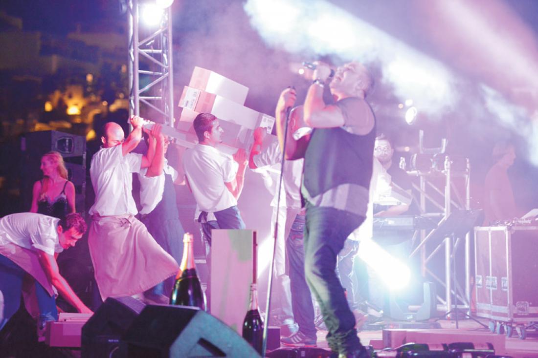 Μιάμιση ώρα αργότερα ο ίδιος ανέβηκε στο stage που είχε στηθεί πάνω στο κύμα για να διασκεδάσει τις παρέες που είχαν πληρώσει έως και 1.000 ευρώ ο καθένας για να τον απολαύσουν.