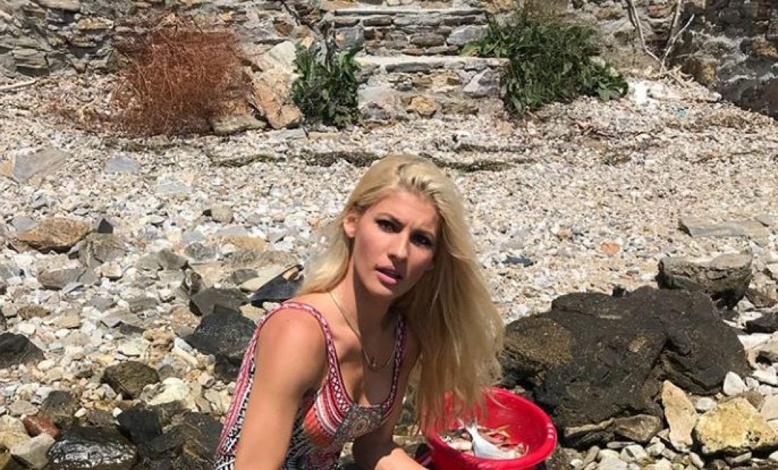 Μάλιστα ανέβασε μια φωτογραφία στην οποία φαίνεται στην παραλία φορώντας το μαγιό της, όχι να κάνει ηλιοθεραπεία,, αλλά να καθαρίζει ψάρια.
