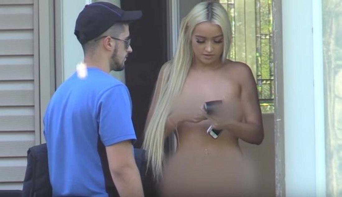 Ολόγυμνη παραλαμβάνει την πίτσα της (ΒΙΝΤΕΟ)