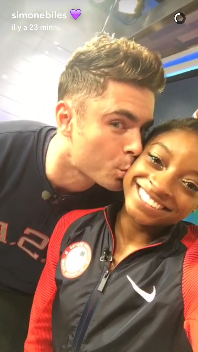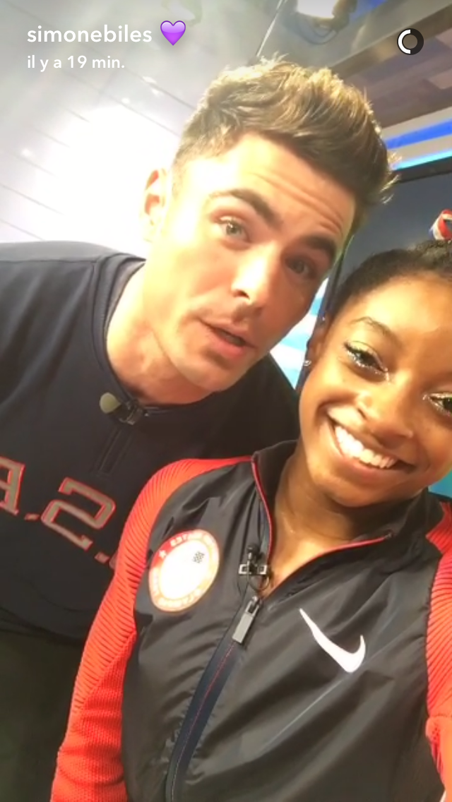 Το όνειρο έγινε πραγματικότητα για την Σιμόν Μπάιλς και δεν μιλάμε για τα χρυσά μετάλλια που σάρωσε στην ενόργανη γυμναστική στο Ρίο, αλλά για την ωραιότερη έκπληξη της ζωής της! Αυτή που της έκανε ο αγαπημένος της ηθοποιός Ζακ Εφρον, ο οποίος "πέταξε" στο Ρίο για να την συγχαρεί από κοντά.