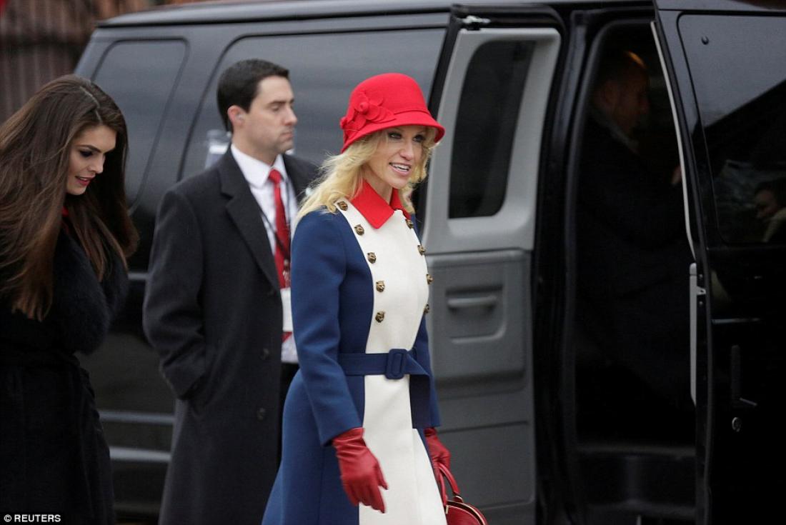 Η Κόνγουέι που ήταν υπέυθυνη της προεκλογικής καμπάνιας του νέου πλανητάρχη είπε πως το μοντέλο αυτό έχει όνομα: "Επαναστατικό Ντύσιμο Τραμπ" και πρόσθεσε πως το μπλε, άσπρο, κόκκινο σύνολό της είναι απλώς Gucci!