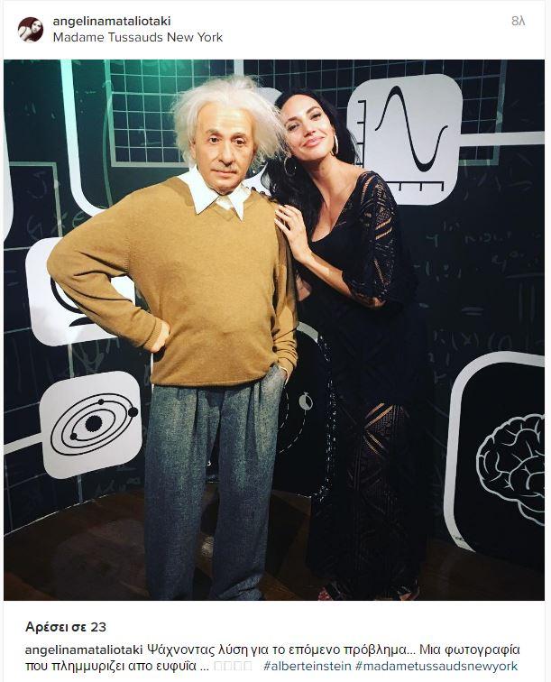 Η Αγγελίνα ανήρτησε στον προσωπικό της λογαριασμό μια φωτογραφία με τον Άλμπερτ Άινσταιν! Φυσικά πρόκειται για ομοίωμά του στο Μουσείο της Νέας Υόρκης, Madame Tussauds.