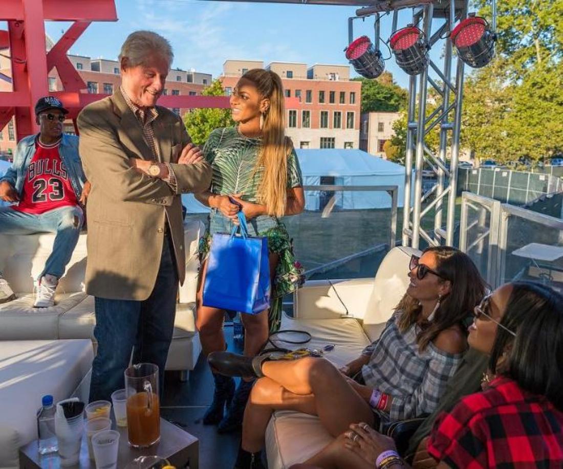 Η Μπιγιονσέ κέρασε λεμονάδα τον Κλίντον ενώ μιλούσαν για αρκετή ώρα και ήταν όλοι χαμογελαστοί. Η φωτογραφία πυροδότησε τις φήμες που θέλουν το ζευγάρι να υποστηρίξει στις επερχόμενες εκλογές την Hillary.