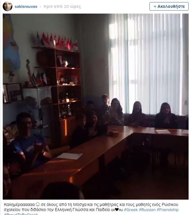 «Καλημέρα σε όλους από τη Μόσχα και τις μαθήτριες και τους μαθητές ενός ρωσικού σχολείου που διδάσκει την Ελληνική Γλώσσα και Παιδεία» , έγραψε στο Instagram ο γνωστός σταρ.