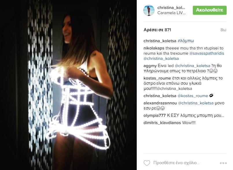 Η φωτογραφία που ανέβασε στον προσωπικό της λογαριασμό στο Instagram πήρε "φωτιά" από τα Likes, ευτυχώς όμως δεν πήρε φωτιά η ίδια με το φόρεμα το οποίο είχε λαμπάκια σαν χριστουγεννιάτικο κέντρο.