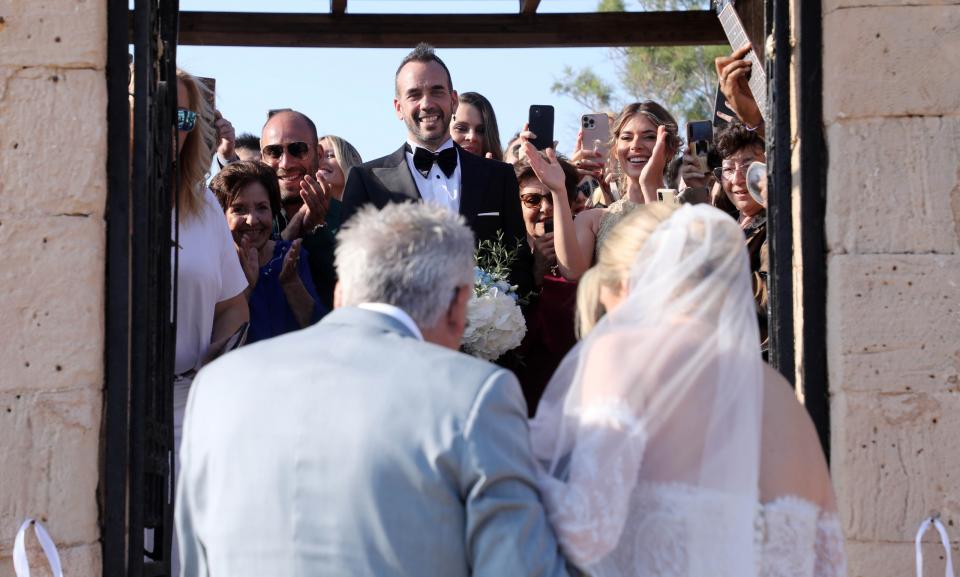 O γάμος έγινε στον Ιερό Ναό των Αγίων Αποστόλων σε μία μοναδική τοποθεσία παρουσία 500 και πλέον καλεσμένων αλλά και πέντε κουμπάρων.
