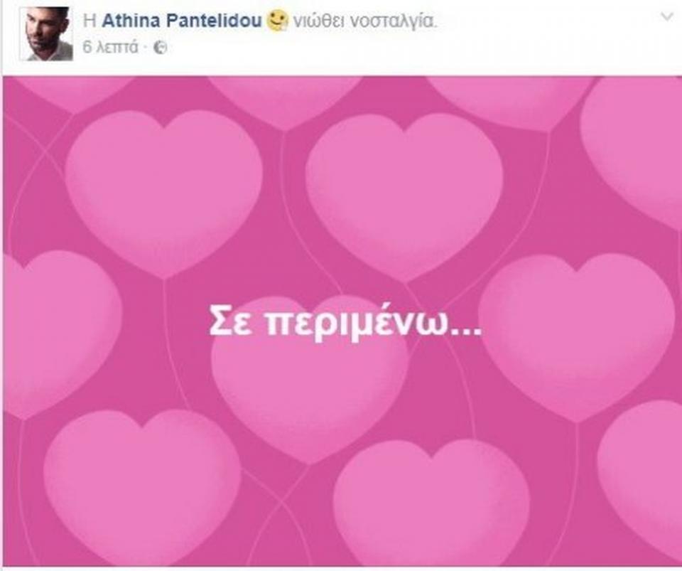 Η κυρία Αθηνά πόσταρε στο facebook μια φωτογραφία με καρδούλες και έγραφε «σε περιμένω» , ενώ η ίδια σημείωσε πως νιώθει νοσταλγία και σκόρπισε θλίψη ακόμα μία φορά στους φίλους της στο facebook της.