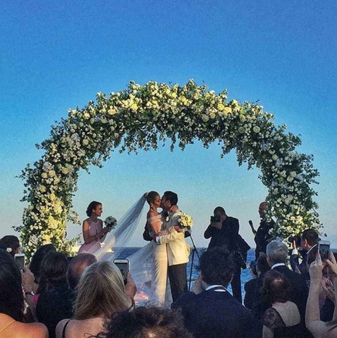 Αξίζει να σημειωθεί ότι στον χώρο της τελετής δέσποζε μία τεράστια αψίδα από λευκά λουλούδια όπου και αντάλλαξαν όρκους αιώνιας αγάπης οι νεόνυμφοι.