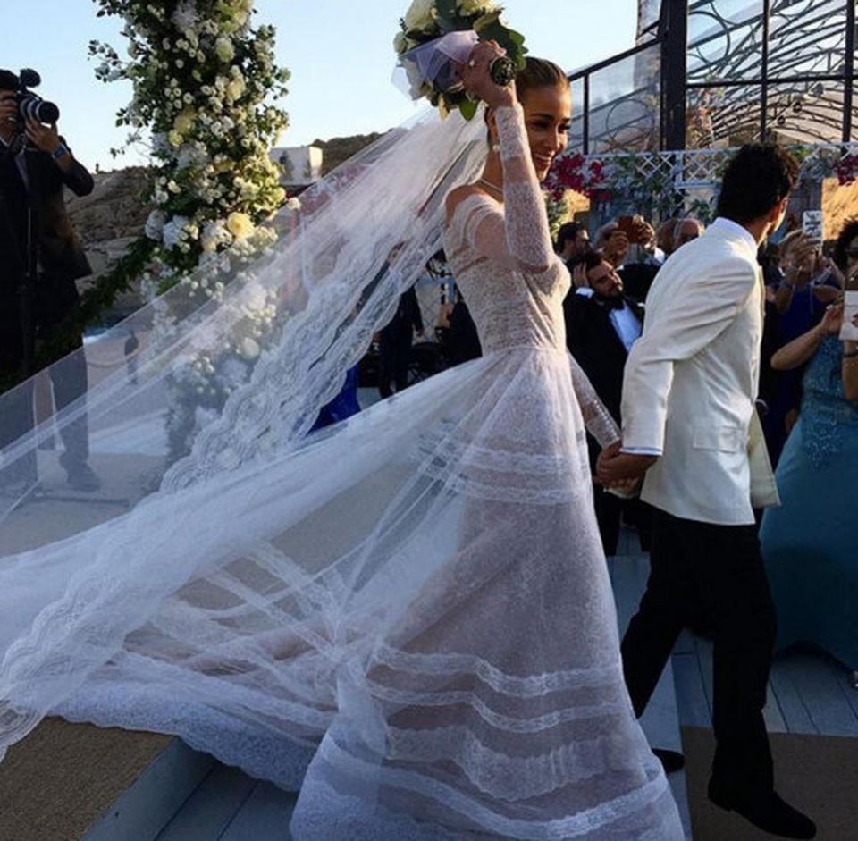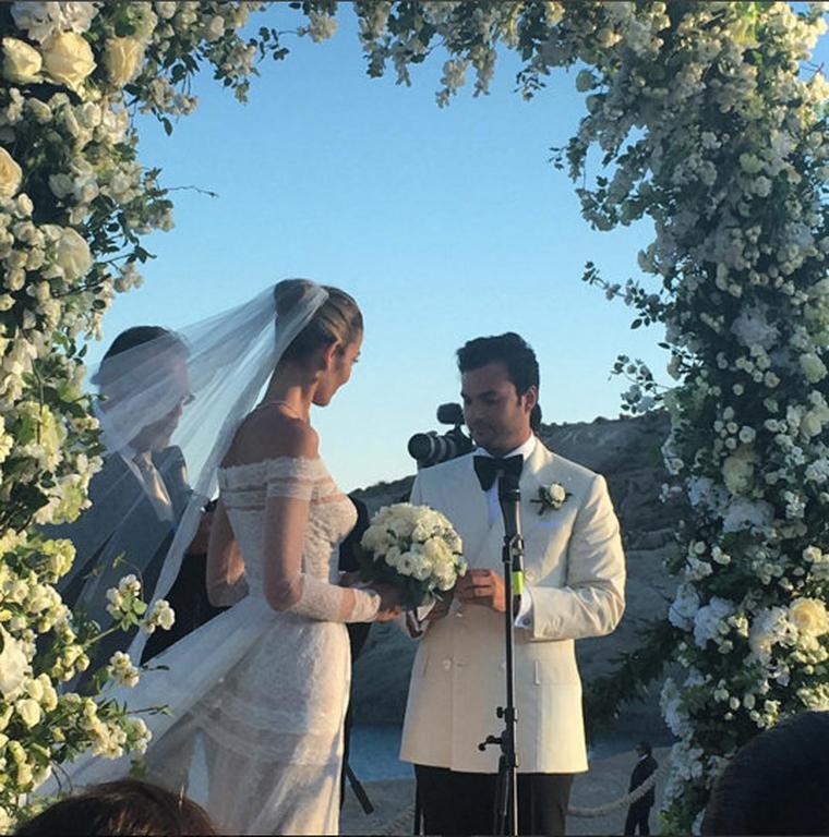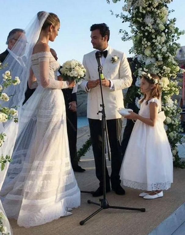 Πολυτελείς θαλαμηγοί, ελικόπτερα και ιδιωτικά τζετς κατέφθασαν στο νησί για τον γάμο αυτό που σύμφωνα με τα όσα λέγονται στοίχισε παραπάνω από πέντε εκατομμύρια ευρώ! Η εκθαμβωτική νύφη στον πολιτικό της γάμο φορούσε ένα boho style νυφικό δια χειρός Alessandra Rich ενώ στην χθεσινή τελετή επέλεξε ένα υπέροχο ρομαντικό νυφικό του οίκου Valentino.