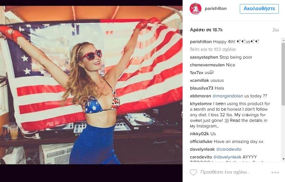 Και επειδή μία ίσον καμία, η Πάρις ανέβασε και δεύτερη φωτό με την σημαία των USA