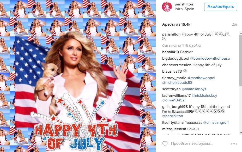Η Πάρις Χίλτον με το σκυλάκι της εύχεται: Happy 4th of July!