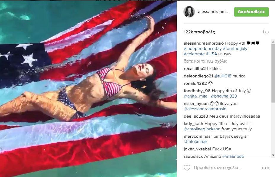 Η Αλεσάντρα Αμπρόσιο γιορτάζει την 4η Ιουλίου σε πισίνα