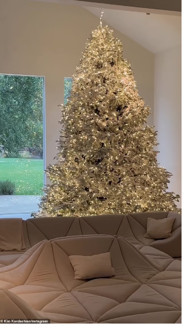 Η Αμερικανίδα επιχειρηματίας στόλισε ένα εντυπωσιακό πανύψηλο δέντρο με λευκά στολίδια και φωτάκια στο «αγαπημένο της σαλόνι» το οποίο είναι εξ ολοκλήρου λευκό και οχτώ χριστουγεννιάτικα δέντρα έξω από το μπάνιο της. Μοιράστηκε στο Instagram ένα βιντεάκι νυχτερινό από το πολυτελές και μίνιμαλ μπάνιο καθώς και ένα από το σαλόνι της με το πιανίστα Φίλιπ Κόρνις (Philip Cornish) να τραγουδά το «We Wish You A Merry Christmas».