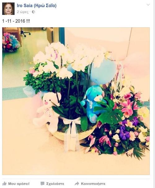Η ίδια, δημοσιοποίησε μια φωτογραφία από τον θάλαμο του δωματίου της γεμάτο από λουλούδια στα μέσα κοινωνικής δικτύωσης σημειώνοντας χαρακτηριστικά ως λεζάντα της φωτογραφίας την χθεσινή ημερομηνία.