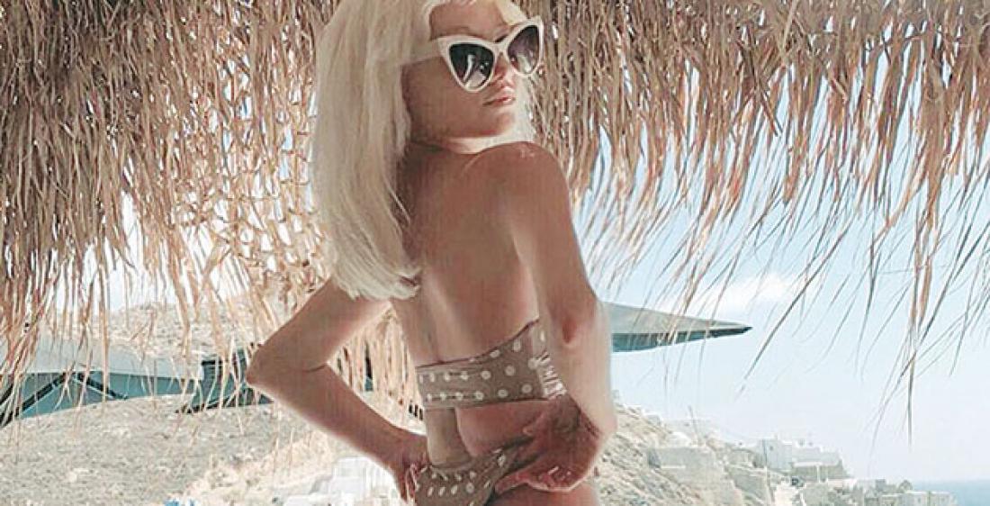 Η ίδια βρίσκεται στο νησί των ανέμων από τις αρχές του καλοκαιριού και, αν εξαιρέσουμε τις ημέρες του εθνικού πένθους για τα θύματα της φονικής πυρκαγιάς στην ανατολική Αττική, όλες τις υπόλοιπες «βομβαρδίζει» τους διαδικτυακούς της φίλους με φωτογραφικές αναρτήσεις που αγγίζουν τα όρια της πρόκλησης.
