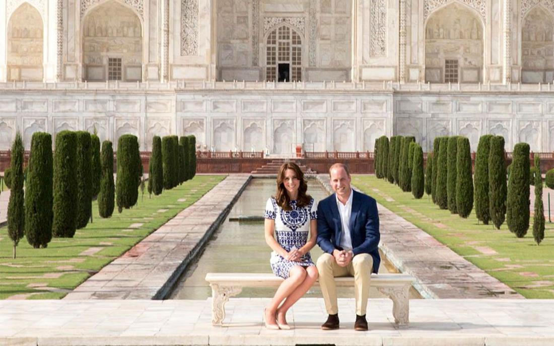 Ο Δούκας και η Δούκισσα του Κέιμπριτζ επισκέφτηκαν και ξεναγήθηκαν στο πιο διάσημο μνημείο της Ινδίας, που χτίστηκε τον 17ο αιώνα από τον Σαχ Τζαχάν ως μαυσωλείο για την πολυαγαπημένη σύζυγό του Μουμτάζ Μαχάλ. Το πριγκιπικό ζεύγος περιέγραψε το μνημείο ως "εκπληκτικό"