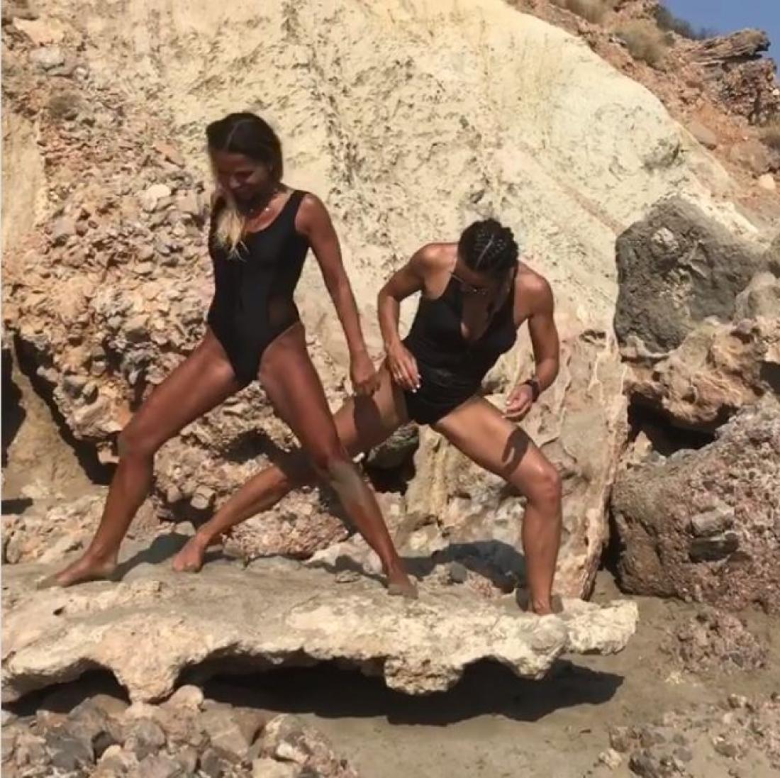 Η Σόφη και η Ελένη συναντήθηκαν στην Κρήτη κατά τη διάρκεια των διακοπών τους και πήγανε μαζί για μπάνιο. Οι δύο γυμνάστριες έκαναν yoga στην παραλία και ανέβασαν σχετικό βίντεο στο instagram.