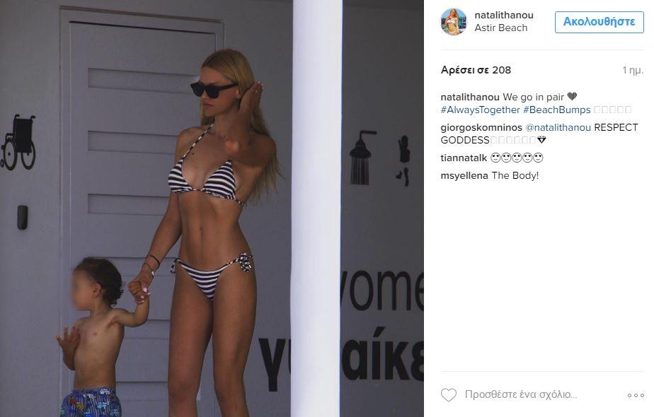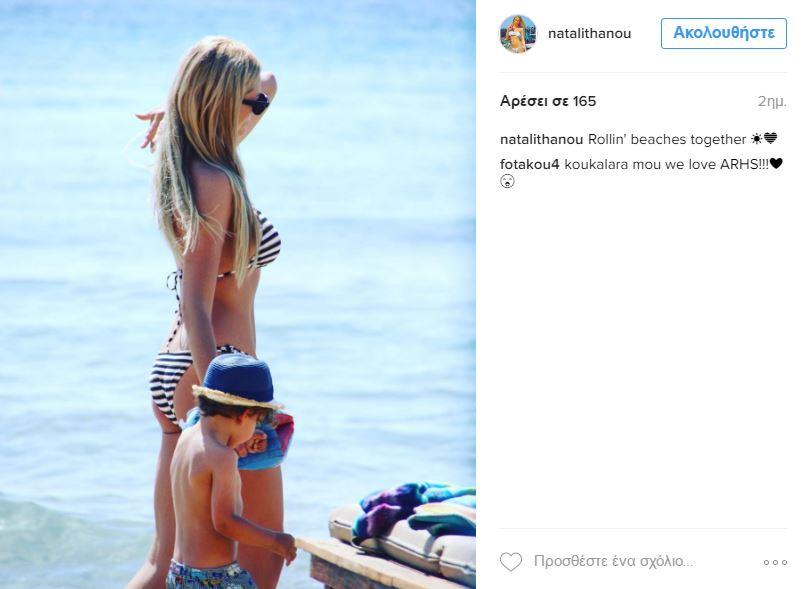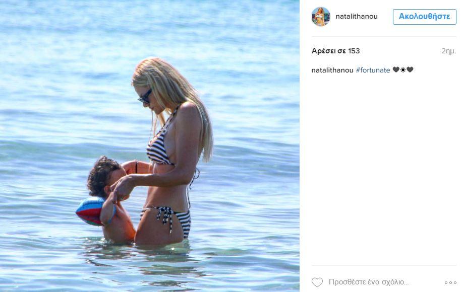 Η ίδια μένει στα Νότια Προάστια και έκανε τις πρώτες της βουτιές με το παιδάκι της σε παραλία της Βουλιαγμένης και με το ασπρόμαυρο μπικίνι της μάς τρέλανε.