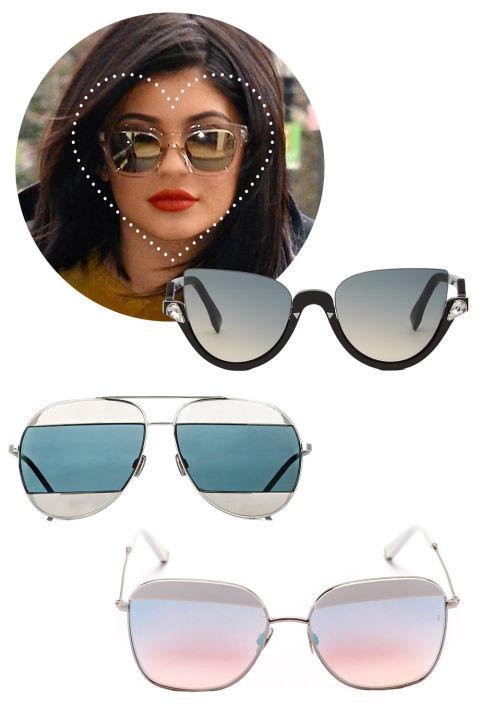 Σε σχήμα καρδιάς. Αν έχετε πλατύ μέτωπο και λεπτό πηγούνι όπως η Κάιλι διαλέξτε ένα ζευγάρι γυαλιά που το κάτω μέρος είναι πιο έντονο και εξέχει από το πρόσωπό σας.