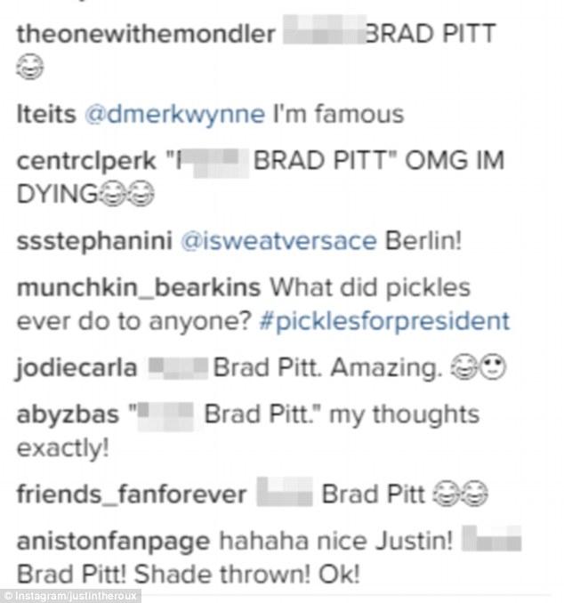 Η ανάρτησή του έρχεται αφότου η κοινή φίλη του ζευγαριού Τσέλσι Χάντλερ υπερασπίστηκε την Τζένιφερ Ανιστον, τονίζοντας πως είναι γελοίο να πιστεύουν ότι θα την ένοιαζε το διαζύγιο του Μπραντ Πιτ: «Είναι ανόητο και θλιβερό που σέρνουν την Τζένιφερ σε όλο αυτό. Λες και νοιάζεται. Δεν τη νοιάζει την Τζένιφερ».