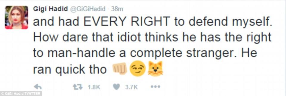 Το σούπερ μόντελ Τζίτζι Χαντίντ απέδειξε πως μπορεί μια χαρά να υπερασπίζεται τον εαυτό της, όταν έσπασε στο ξύλο άντρα που την άρπαξε και προσπάθησε να την σηκώσει στον αέρα την ώρα που εκείνη και η αδελφή της Μπέλα έβγαιναν στο δρόμο μετά μια επίδειξη μόδας στο Μιλάνο.