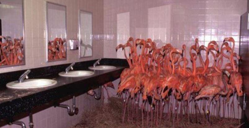 Τα φλαμίνγκο κλείστηκαν στο μπάνιο προκειμένου η ζέστη και ο κλειστός χώρος να τα κρατήσει ζωντανά!