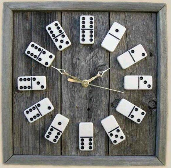 Μπορείς να κάνεις μια ξύλινη κατασκευή, παίρνοντας μόνο ένα κομμάτι ξύλο και κολλώντας επάνω του κομμάτια από το παλιό σου domino, με τους ανάλογους αριθμούς, ώστε να δείξεις την ώρα.