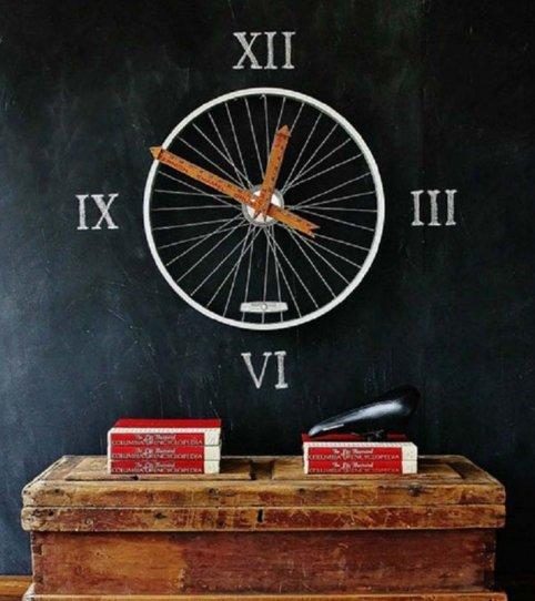 Έχεις μια παλιά ρόδα ποδηλάτου και δεν ξέρεις τι να την κάνεις; Χρησιμοποίησε την σαν βάση για το ρολόι σου και στην θέση των δεικτών βάλε δύο ξύλινους χάρακες, για να έχεις ένα ακόμη πιο vintage αποτέλεσμα.