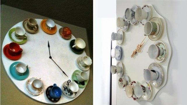 Τέλος, και πάλι για τη διακόσμηση του σαλονιού, μπορείς να πάρεις όλα τα παλιά σερβίτσια του καφέ ή του τσαγιού που δεν χρησιμοποιείς και να τα κολλήσεις επάνω στην ξύλινη επιφάνεια σου.