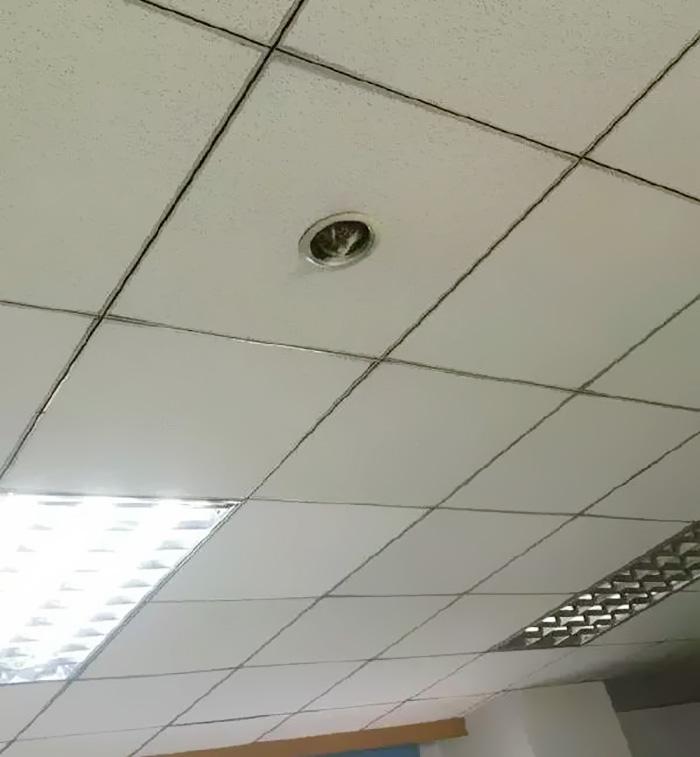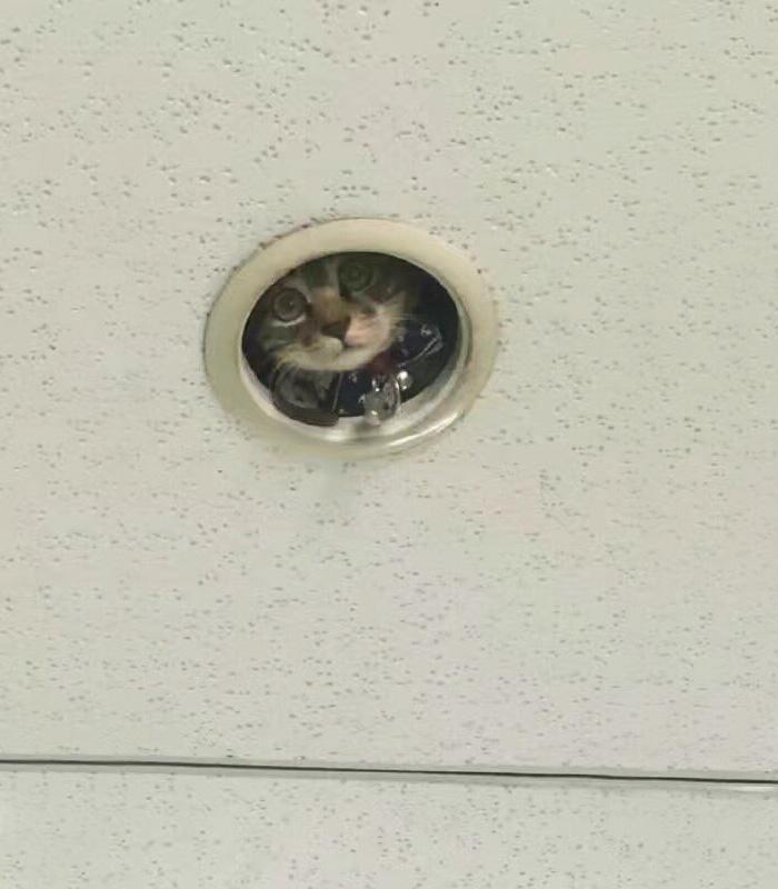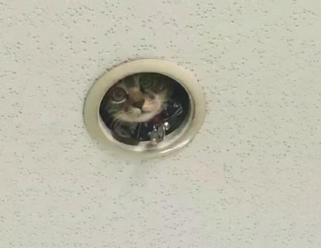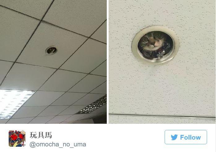 Έκπληκτοι έμειναν οι Ιάπωνες εργαζόμενοι σε αυτό το γραφείο όταν αντίκρισαν πάνω από το κεφάλι τους, την φάτσα αυτή της γλυκούλας γάτας που ξεπρόβαλε από το ταβάνι. Τελικά είμαστε σίγουροι οι γάτες μπορούν να τρυπώσουν παντού!