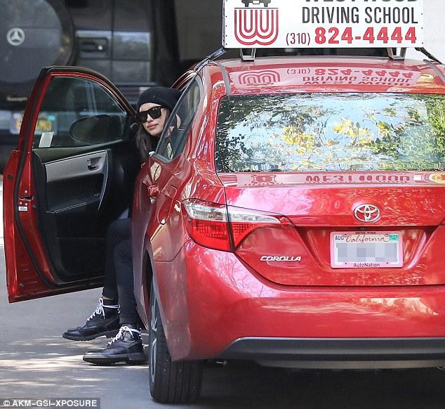 Με ένα t-shirt, τζιν, μαύρα γυαλιά και σκούφο η Ιρίνα εθεάθη στην Καλοφόρνια - χωρίς τον Μπράντλει - σε γνωστή επιχείρηση για μαθήματα οδήγησης.