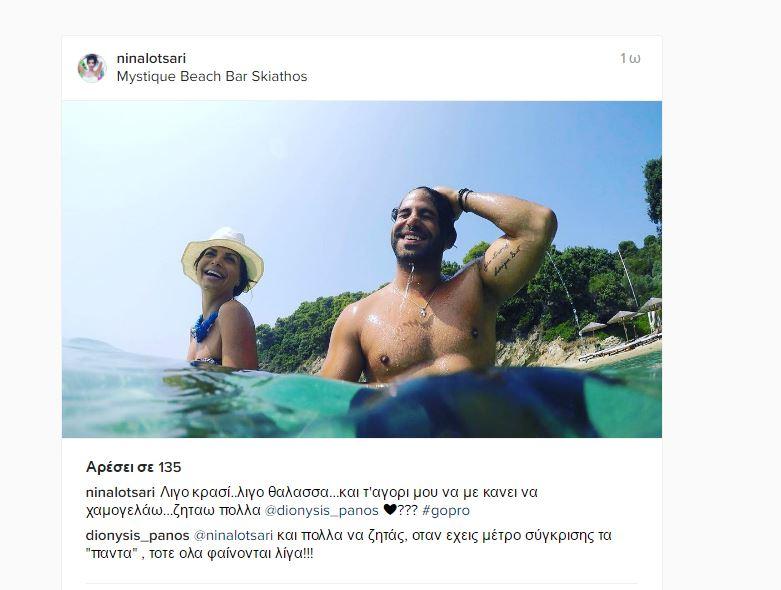 Η Νίνα Λοτσάρη και ο Διονύσης Πάνος είναι μαζι για περισσότερο από ένα χρόνο και προσπαθούν να περνούν όσο περισσότερες ώρες μπορούν μαζί. Ο Διονύσης είναι εδώ και τρια χρόνια επίσημος διατροφολόγος της ΑΕΚ