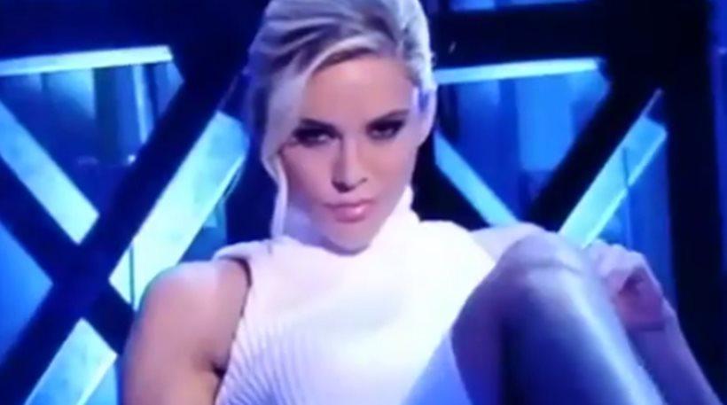 Η Ελληνίδα ξανθιά καλλονή ζωντάνεψε για τους τηλεθεατές την επίμαχη σκηνή με το σταυροπόδι.