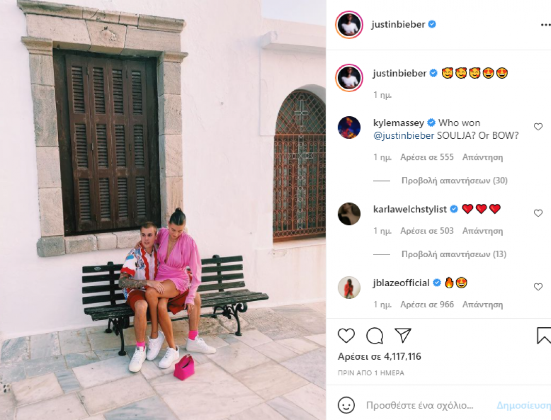 Ρομαντικό ταξίδι στα ελληνικά νησιά για το διάσημο ζευγάρι Τζάστιν και Χέιλι Μπίμπερ - Γοητευμένοι είναι με τις ομορφιές τους