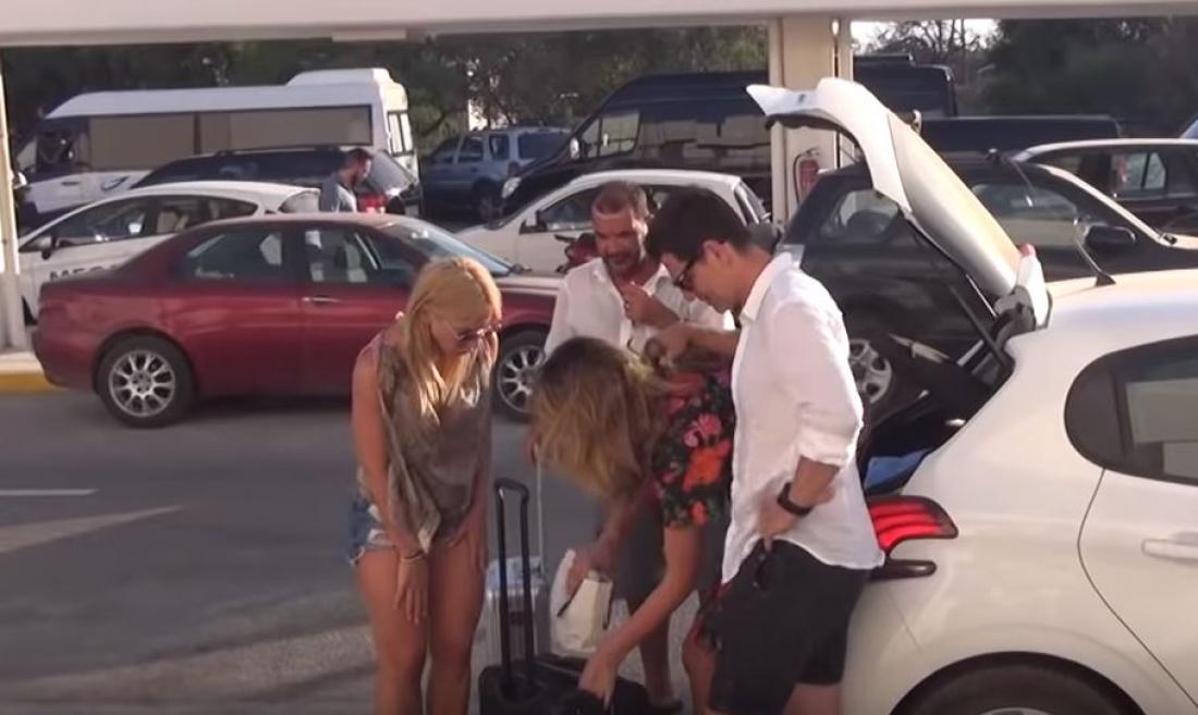 Η κάμερα του Mykonoslivetv απαθανάτισε το ζευγάρι κατά την άφιξή του στο αεροδρόμιο και εκεί ήταν που έγινε μια παρεξήγηση ανάμεσα στους φωτογράφους και τον Σάκη Ρουβά .