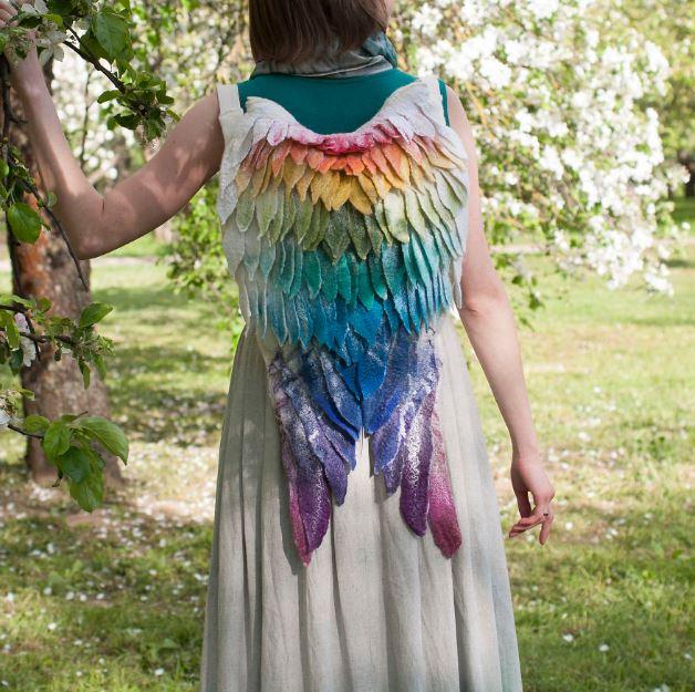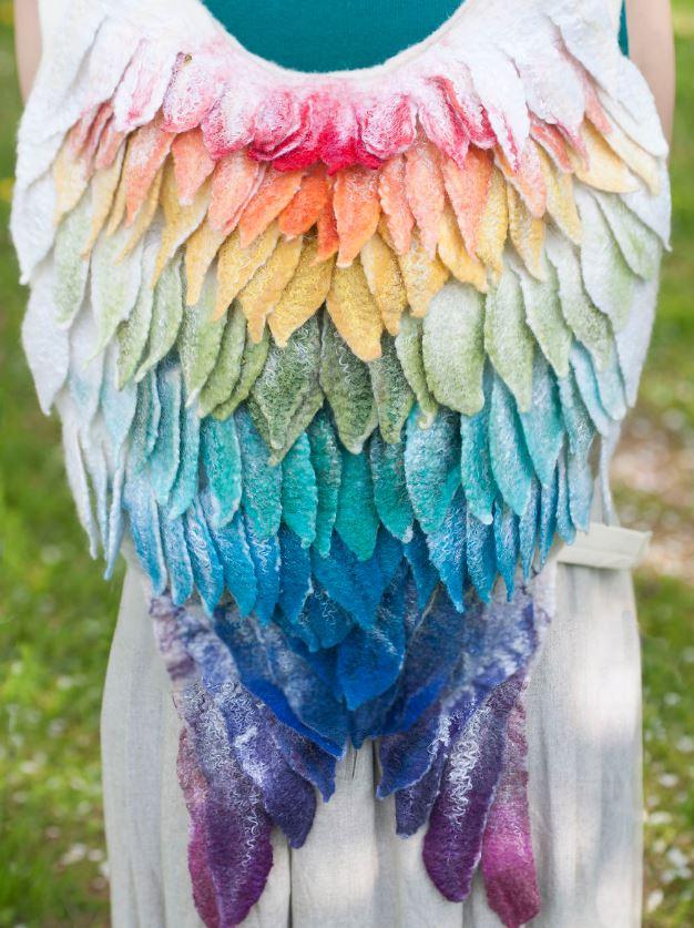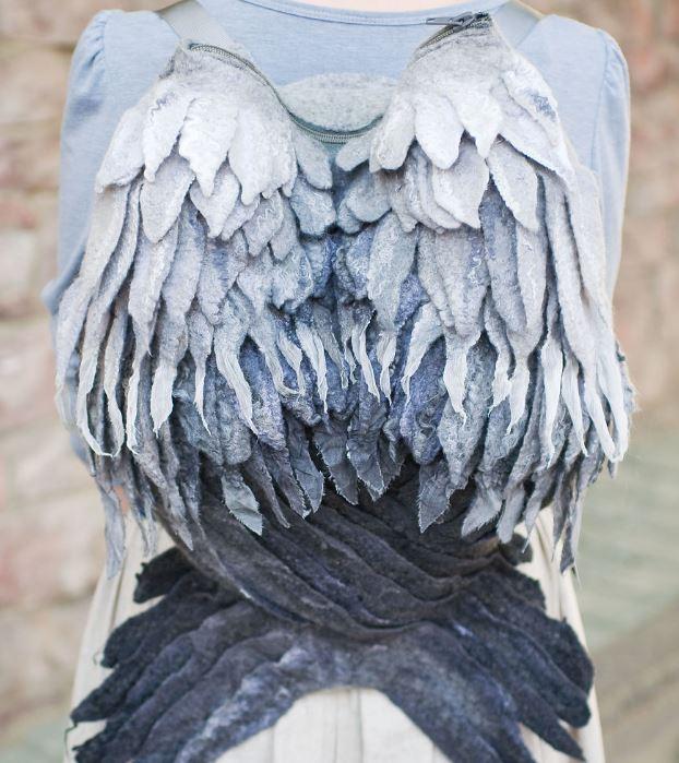 Είναι κατασκευασμένο από πιληματοποιημένο μαλλί που είναι πολύ ανθεκτικό και άνετο. Κάθε σακίδιο έχει ένα φερμουάρ και επένδυση με τσέπες στο εσωτερικό. Τα λουριά μπορούν να σφίξουν και να ρυθμιστούν κατάλληλα.